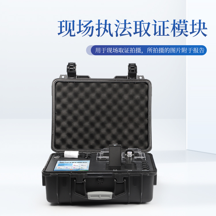 便携一体式多参数水质检测仪采用高强度PVC工程塑料手提箱设计,消解检测一体式设计,其中消解模块具备双温区功能,检测部分同时具备360°旋转比色管检测和比色皿检测,安卓智能操作系统,8英寸高清液晶触摸屏,光纤检测技术,进口光源,内置大容量锂电池,现场执法取证模块,便携多参数水质检测仪具有性能稳定、测量准确、测定范围广、功能强大、操作简单等特点。